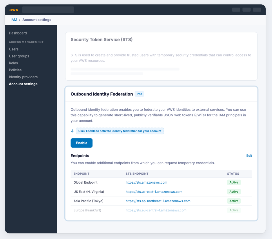 Step 1: Enable AWS IAM Outbound Identity Federation