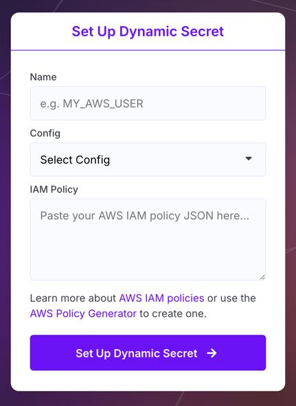 Note: in the example, the dynamic secret is named AWS_USER - replace that value with whatever you named your dynamic secret.