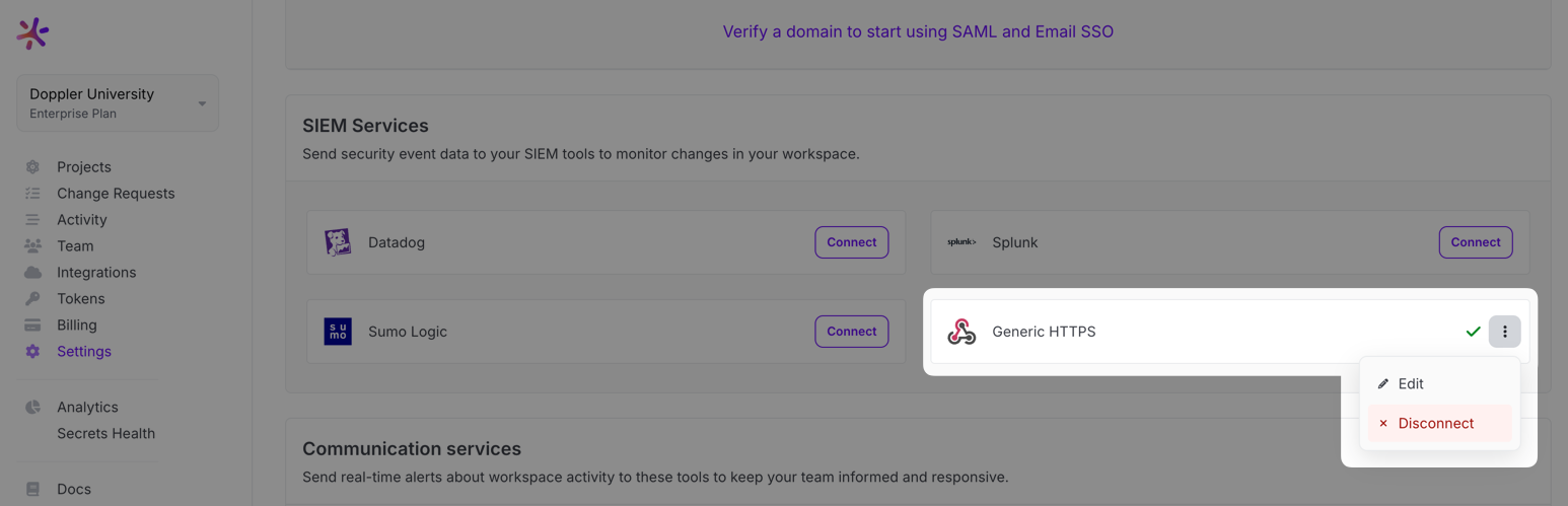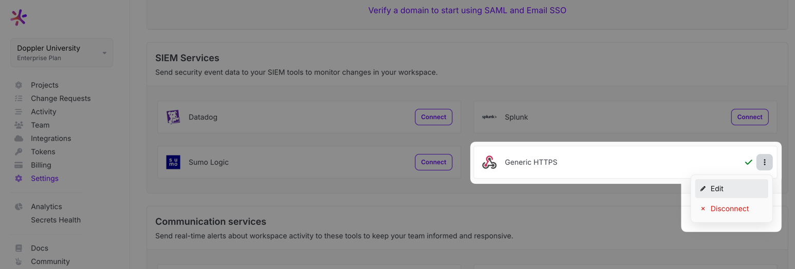 - Only one Generic HTTPS logging integration can be configured currently, so make sure you configure this to send logs to your primary log aggregator or SIEM.