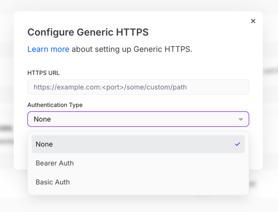 Next, paste in the HTTPS URL you'd like to send logs to. You can optionally provide a bearer token or basic auth credentials for authentication.
